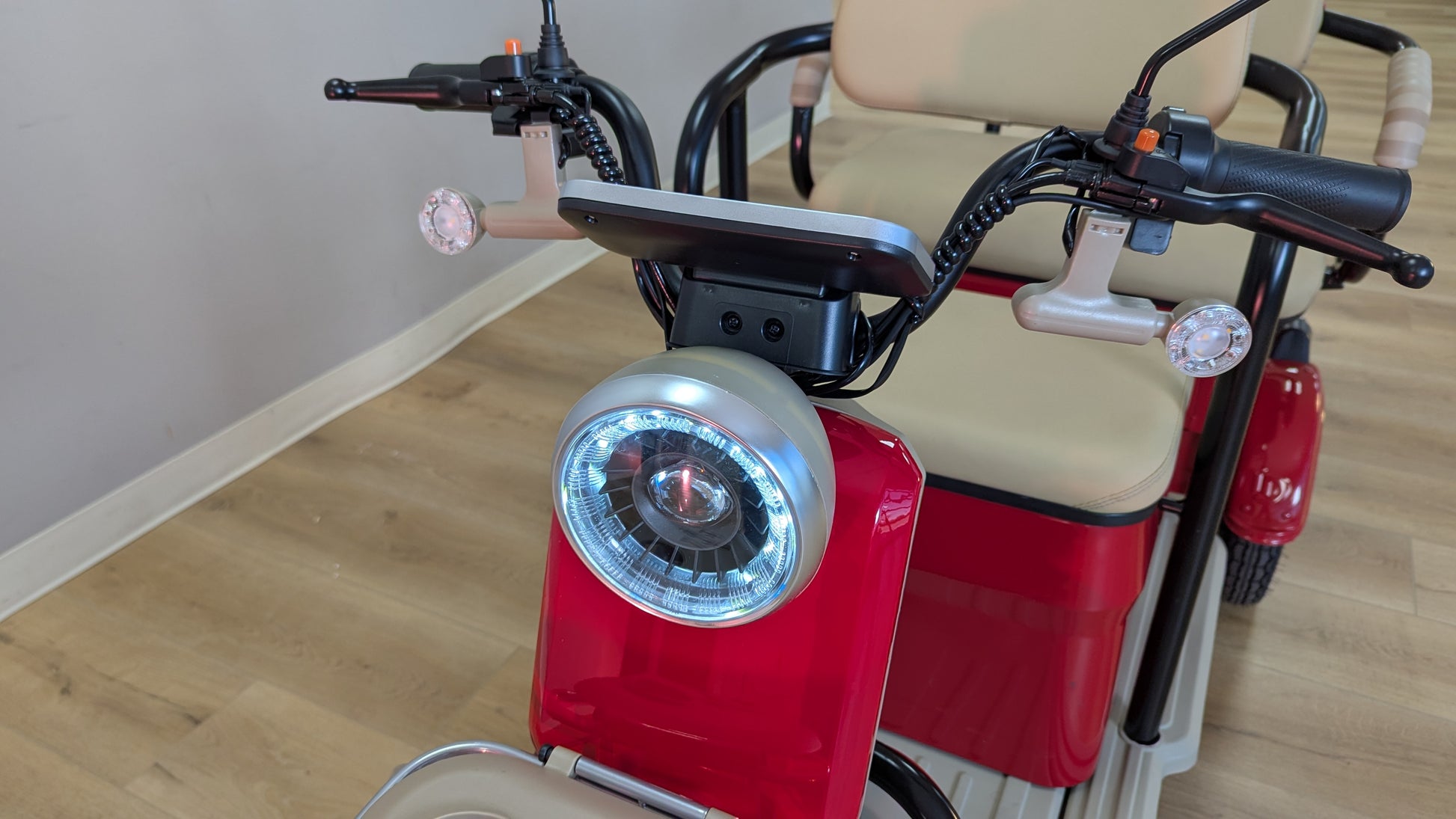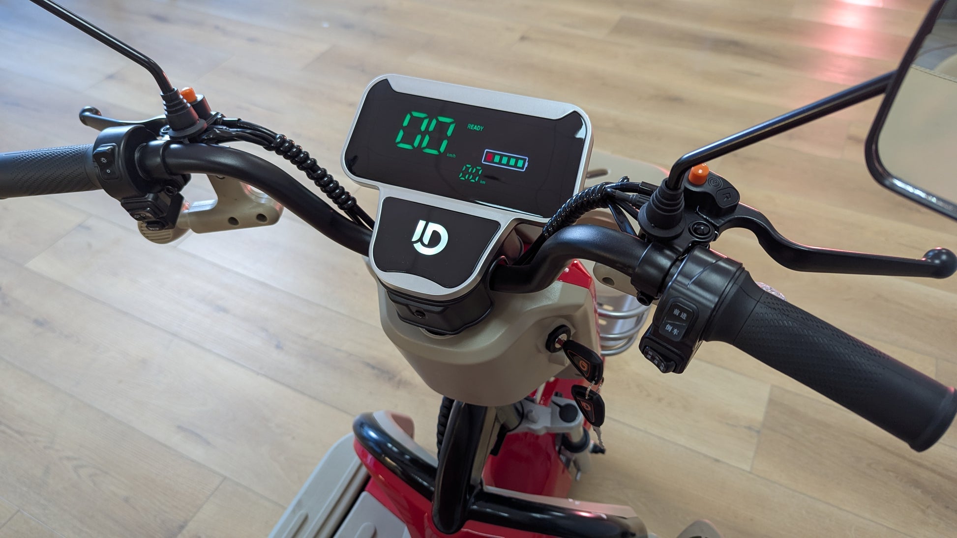 Features a 3-speed LED dashboard display with intuitive throttle and brake functions. -