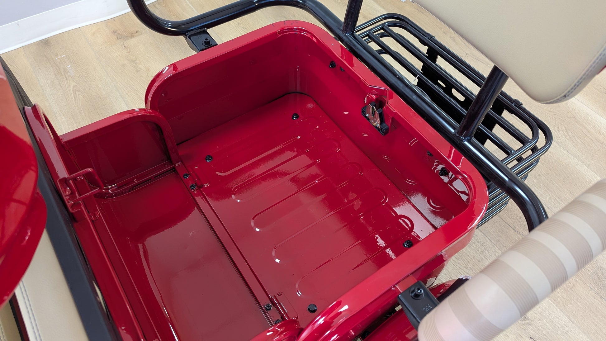 Under-seat storage beneath the rear seat for small tools, bags, or personal items. -